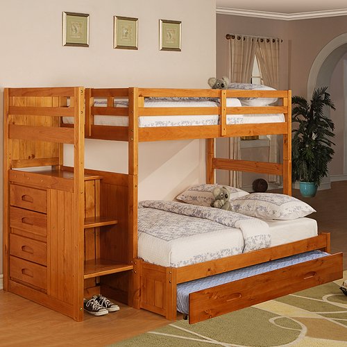 Buy Honey Twin Full Staircase Ranch Bunk w/ Trundle: Desk Hutch & Chair, TV Stand Best new deal of the day for sale and lowest price