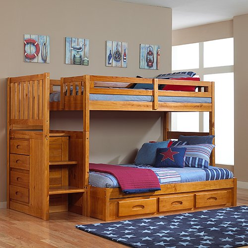 Check Deal of the day for Honey Twin Full Staircase Mission Bunk w/ 3 Drawers: Desk Hutch & Chair, TV Stand and more discount prices here.