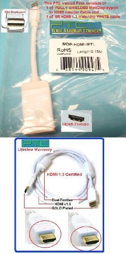 Description Value Pack - PTC Premium Mini DisplayPort to HDMI Adapter w/6FT WHITE HDMI Gold Series Cable for all Macbook with Mini Displayport interface